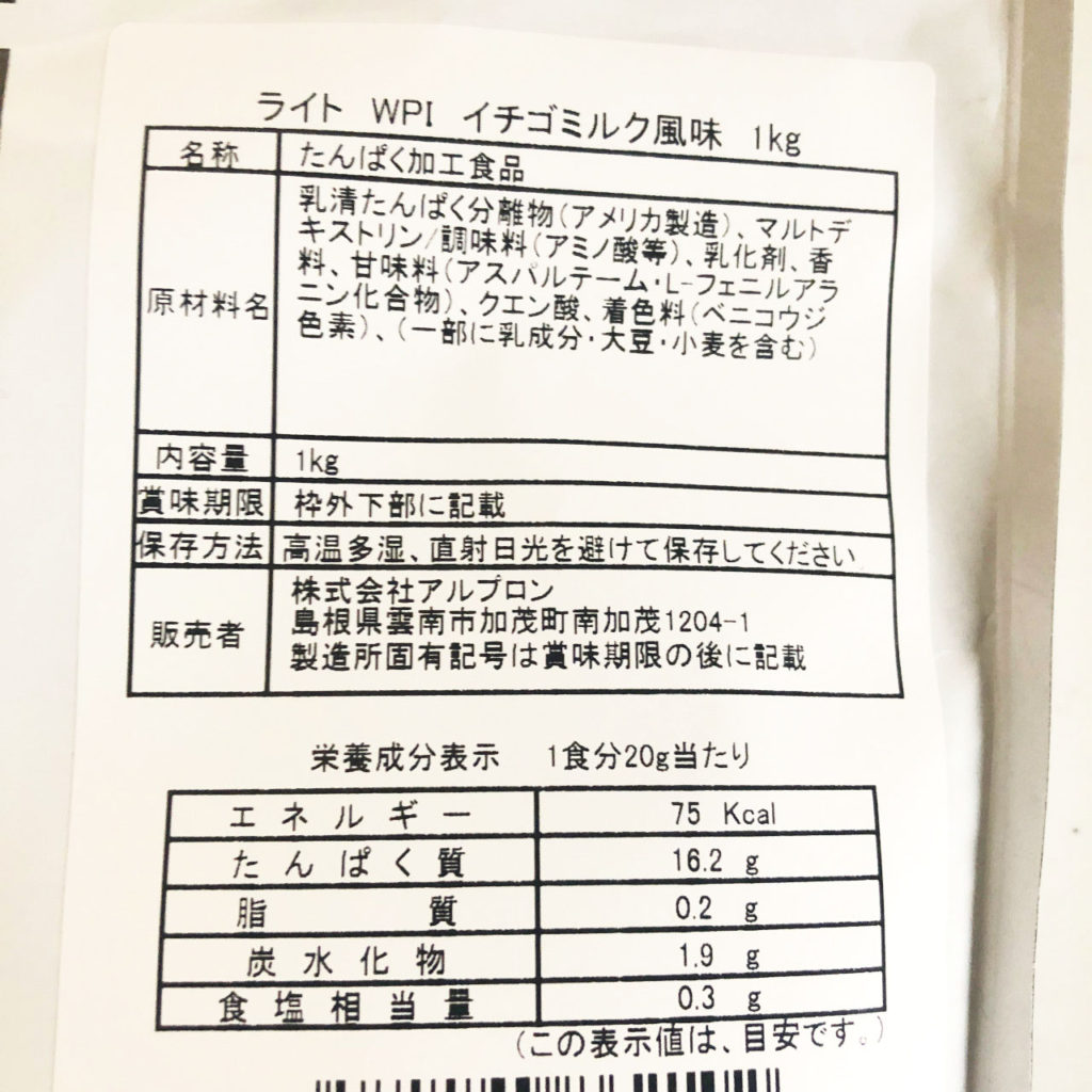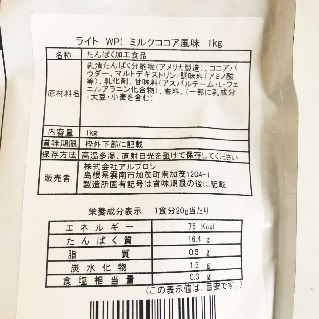 こちら、名称にWPIとあるだけあって、他のライト製品に比べると少しタンパク質量は多めの炭水化物は低め。美味しく食べれてこの成分は嬉しいですね。そしていうほど値段も高くない!
